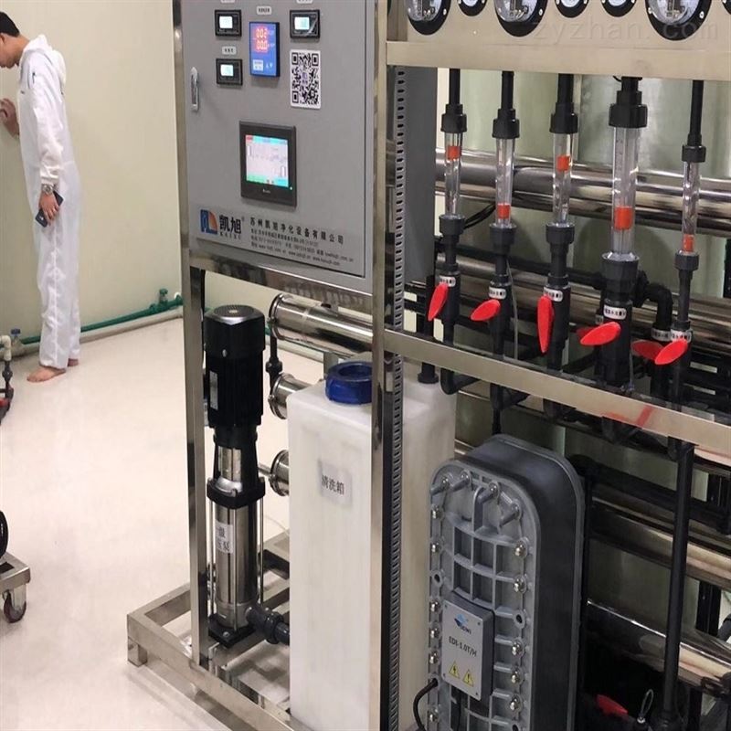 凯旭高纯水系统出水水质符合电子二级用水标准。原理是利用混和离子交换树脂吸附给水中的阴阳离子,同时这些被吸附的离子又在直流电压的作用下,分别透过阴阳离子交换膜而被除去的过程。这一过程离子交换树脂是电连续的,因此不需要使用酸和碱对之ZS。