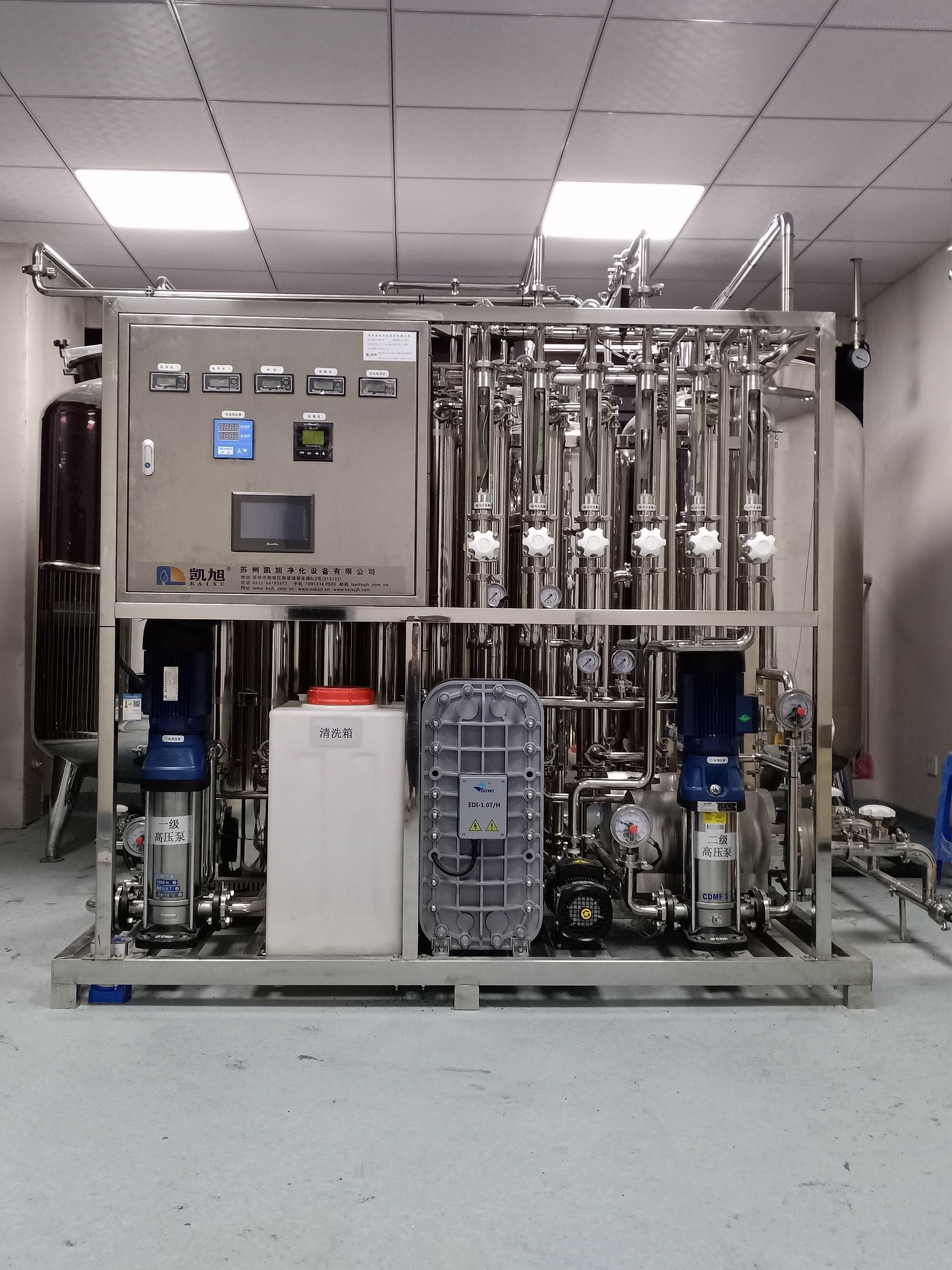 (6)待运行稳定,产水电导率达到要求后,开纯水箱进水阀,关纯水排放阀,将合格产水放入纯水储存箱。