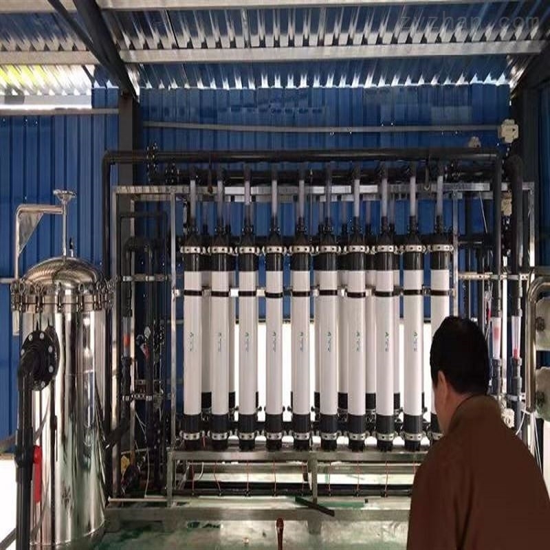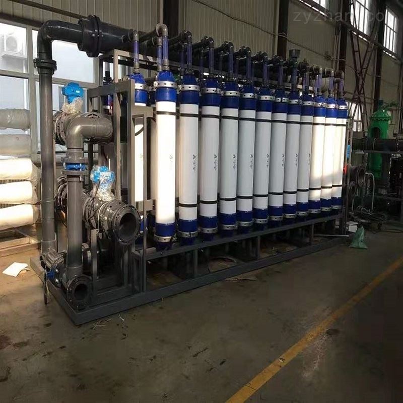 原水→原水箱→加压泵→多介质过滤器→精密过滤器→中空超滤设备→超滤水箱
